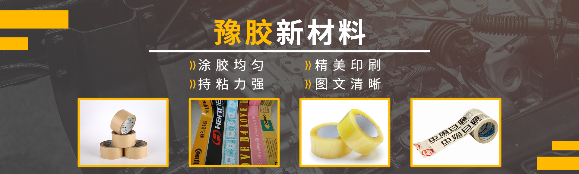 河南豫膠新材料科技有限公司,廠區占地2萬平方米,員工200余人,我公司是一家集研發、訂制、生產、銷售為一體的綜合型企業。主要生產:封箱膠帶、印字廣告膠帶、海綿膠帶、中高溫雙面膠帶、中高溫美紋紙膠帶、牛皮紙膠帶、等各種膠帶。公司落在歷史悠久、文化深遠、風景秀麗的河南省省會--鄭州,現在的鄭州是整個中原崛起計劃的腹地,經濟發達,交通便利。公司秉承"顧客至上,銳意進取"的經營理念,堅持"客戶優先"的原則為廣大客戶提供優質的服務。歡迎惠顧!